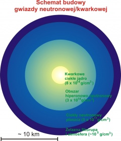 Schemat budowy gwiazdy neutronowej i gwiazdy kwarkowej. Autor: L. Błaszkiewicz