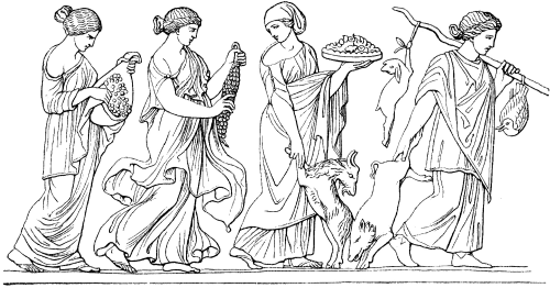 Hory wyobrażano sobie jako młode dziewczyny, trzymające w rękach różne rodzaje płodów ziemi, w towarzystwie muz oraz Gracji.