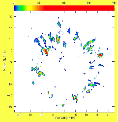 Obraz przedstawiajacy źródła emisji maserowej SiO o czestotliwości 43 GHz rozlokowane w poblizu gwiazdy TX Cam. Źródło:Jiyune Yi i in., A&A, 432, 2.